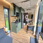 Von einer Terrasse aus kann man einen Ausblick auf den Garten genießen. Die 1-Zimmer-Villa Za Zrcadlem verfügt über ein Badezimmer mit einer getrennten Toilette, einem Whirlpool und einer Dusche. Ein Haartrockner und Badelaken sorgen für zusätzlichen Komfort.